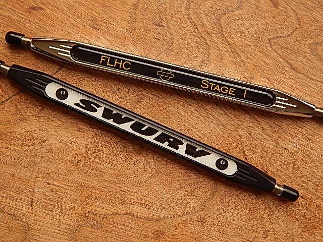 RoadNames custom Harley shift linkage rods fit most late model Harley-Davidson big twins from 1984 through the current FL models. All our custom shift linkages for Harley-Davidsons are billet aluminum and either chrome-plated or black-anodized.