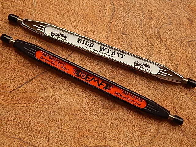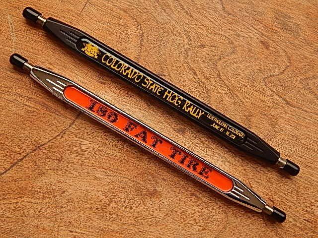 These custom-made motorcycle shifter links feature an insert, either black-anodized billet aluminum or modified acrylic. We laser engrave the insert with your design – a nickname for you or your bike, an anniversary date, a graphic design, a club logo, whatever you want it to say. The only limitation is the size: the engravable space is ½” high and 6.5” long.
